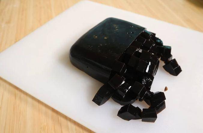 Jika cincau sudah memadat, itu tandanya sudah siap untuk digunakan. Tekan di bagian pinggir agar lebih mudah mengeluarkan cincaunya. Taruh di piring dan mulai potong kecil-kecil sesuai selera.