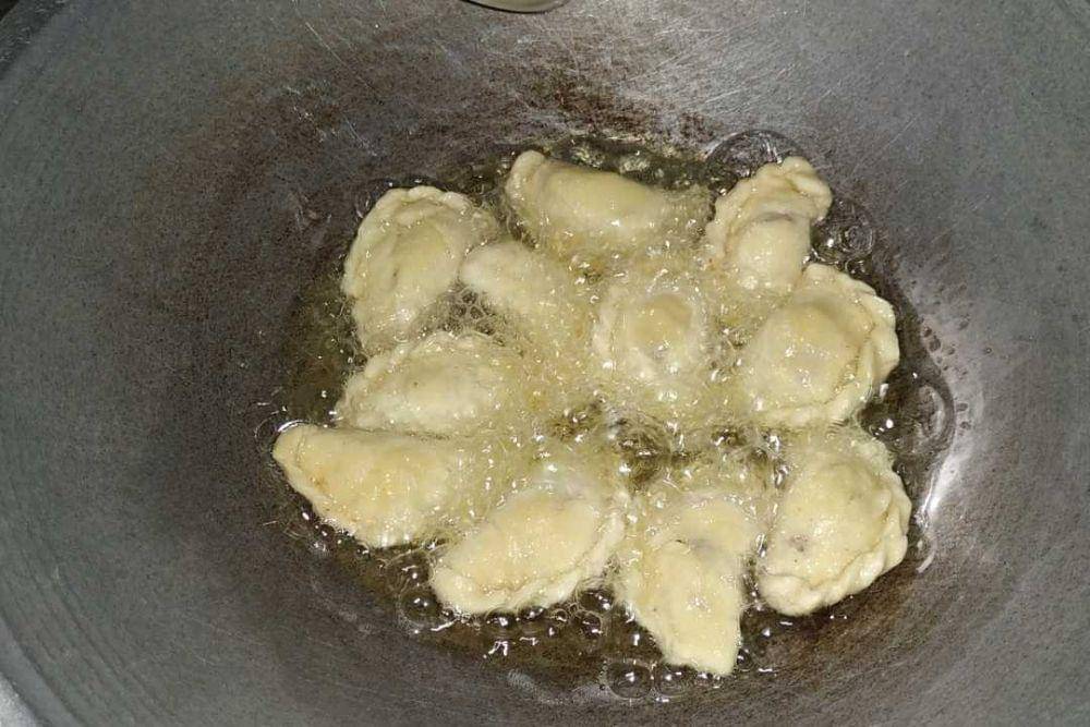 Setelah selesai membentuk semua adonan dan bahan isian menjadi pastel, sekarang waktunya untuk menggorengnya. Panaskan minyak goreng dengan api sedang. Lalu goreng pastel hingga berwarna kecokelatan. Jangan lupa untuk membalik sisi pastel yang lain agar matangnya merata. Setelah pastel matang, angkat dan tiriskan.